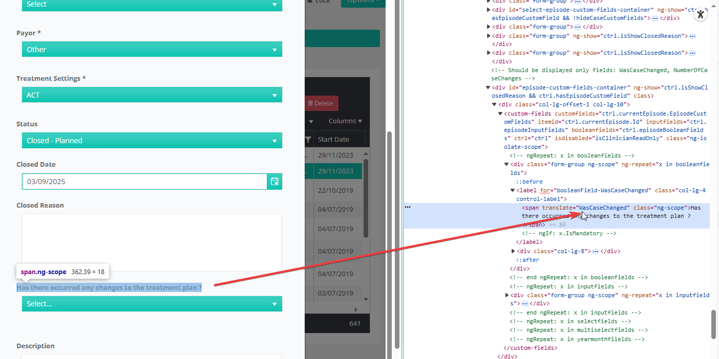 For example you have a custom field called "Has there occured any changes to the treatment plan?" associated with the Episode entity in OpenFIT that had the following values: